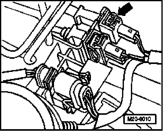 - Disconnect the 2-pin connector from needle lift sensor -arrow-.