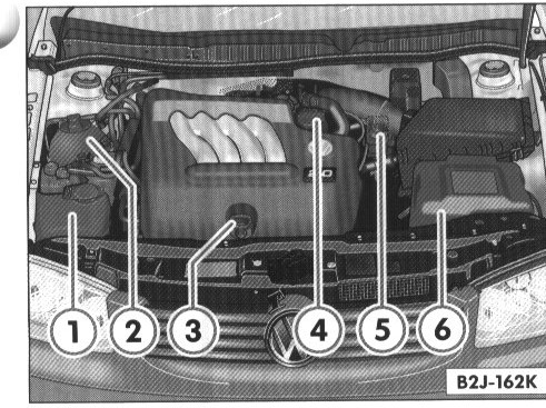6 - Vehicle battery (protected by a cover}