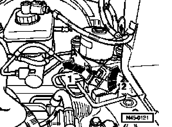 - Release control module connector (arrow -1-) and pull off (arrow -2-).