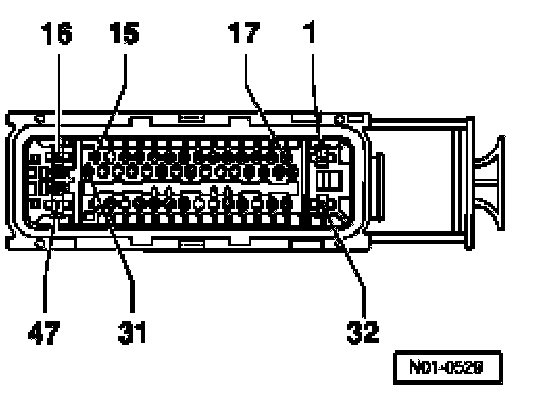 Contact assignment of connector T47 wiring harness/ABS control module (w/EDL) -J104-.