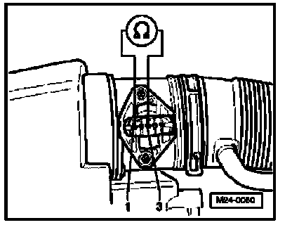 - Remove intake hose between Mass Air Flow (MAF) sensor and Throttle Valve Control Module -J338- (item 16 ) using VAS 5024 assembly tool for spring-type clips.