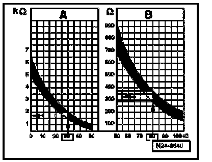 - 30 degrees C is in range A and corresponds to a resistance of 1.5 to 2.0 k ohms