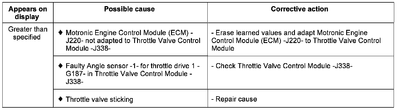 Evaluating display group 10, display zone 3 - Throttle valve angle, Angle sensor -1- for throttle drive