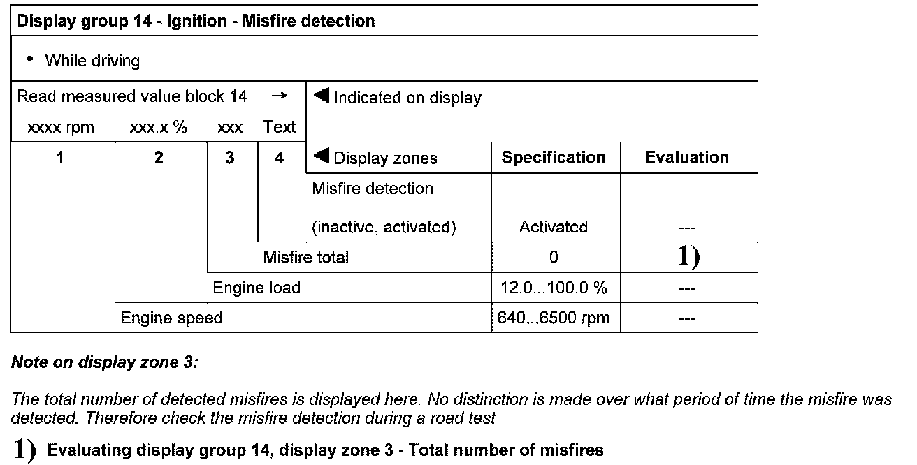 Display group 14 - Ignition - Misfire detection