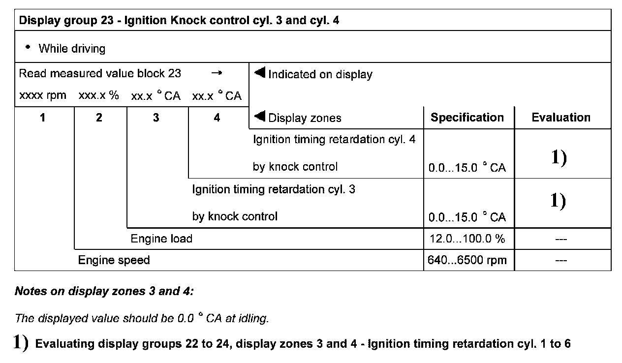 Display group 23 - Ignition - Knock control cyl. 3 and cyl .4