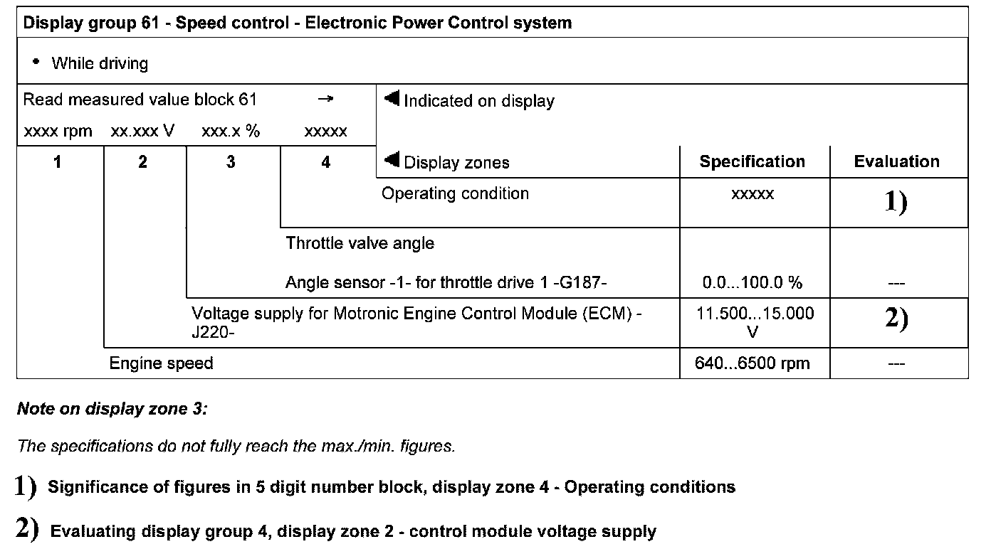 Measured value blocks, display groups 50...69 - Speed control, Evaluating