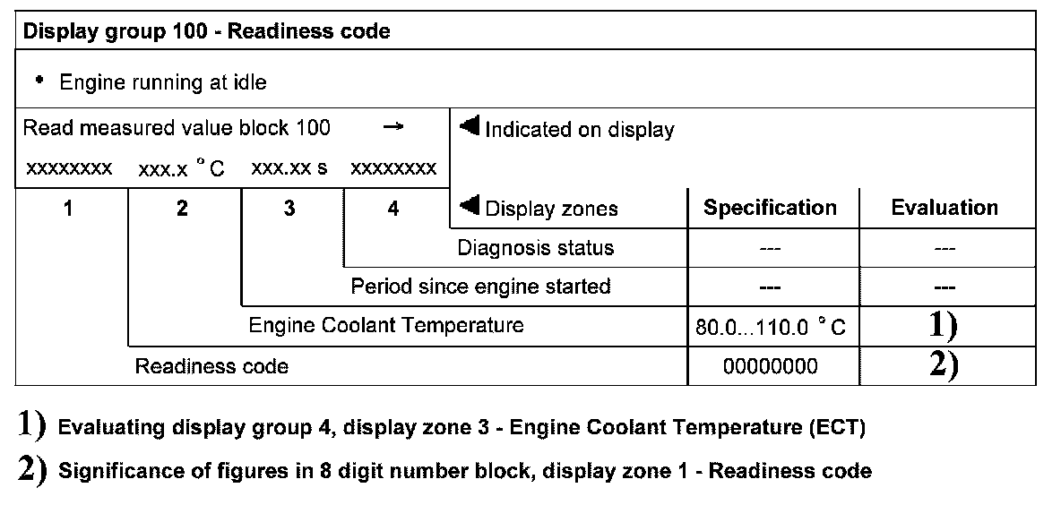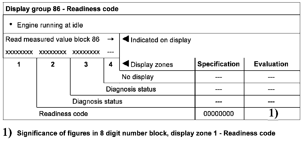 Measured value blocks, display groups 86...89, 100 - Readiness code, evaluating