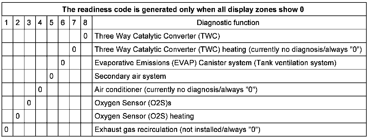 Significance of figures in 8 digit number block, display zone 1 - Readiness code