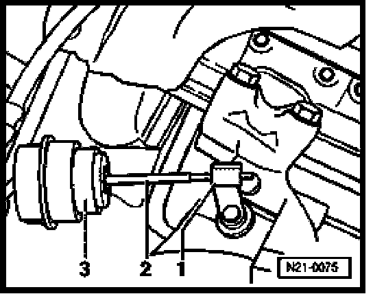 - Bring engine to maximum RPM by depressing accelerator pedal suddenly. Operating rod -2- for wastegate bypass regulator valve must move.