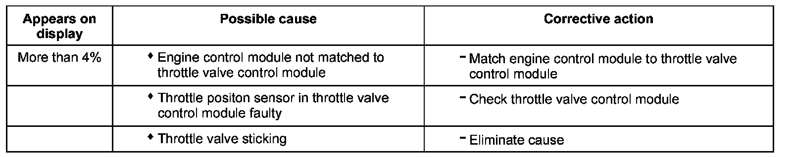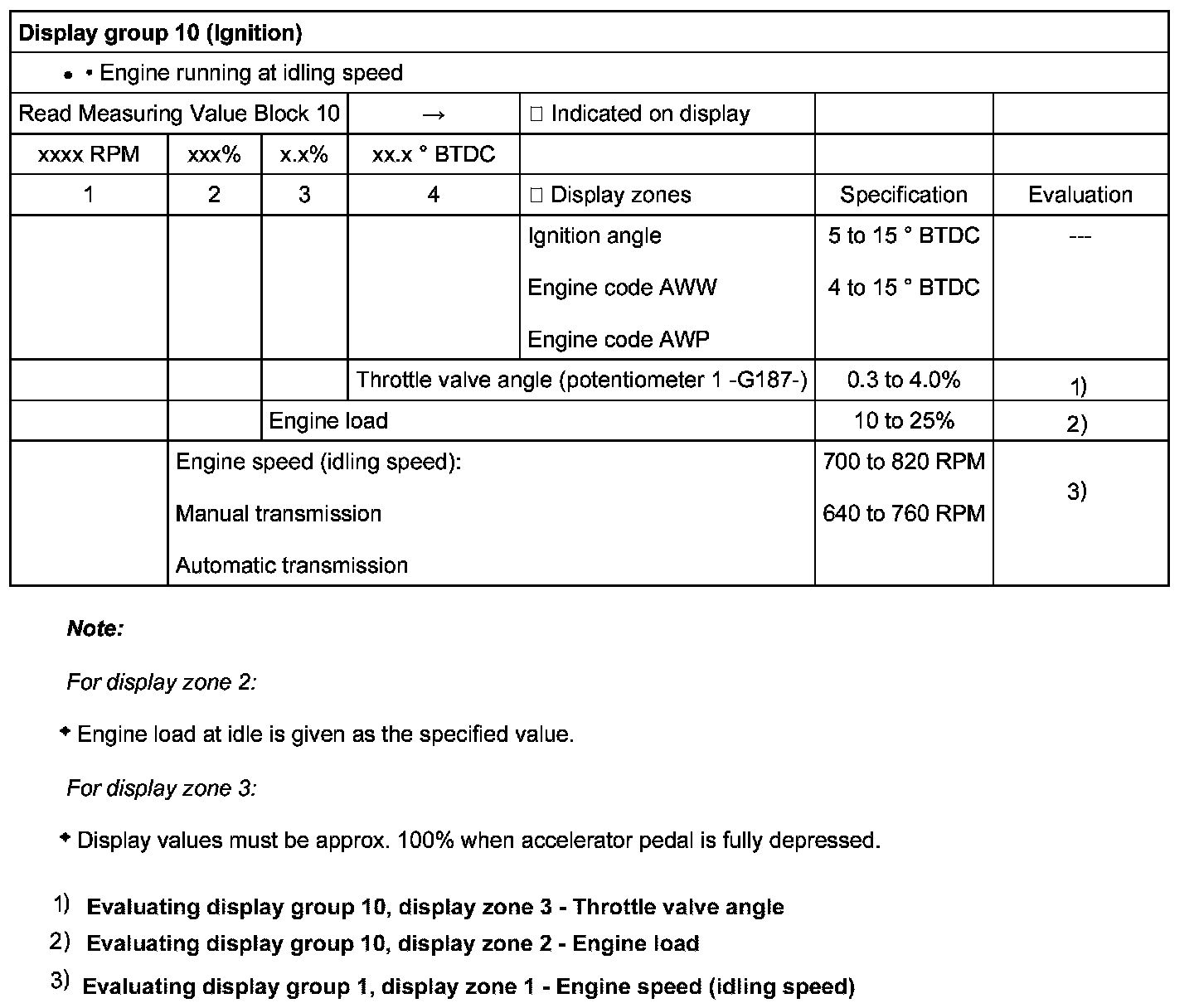 Evaluating display group 10, display zone 3 - Throttle valve angle