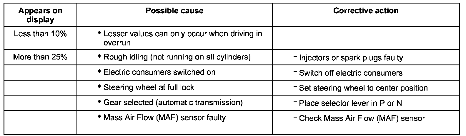 Evaluating display group 10, display zone 2 - Engine load