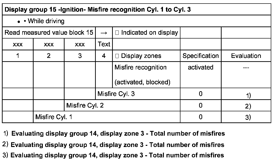 Evaluating display group 14, display zone 3 - Total number of misfires