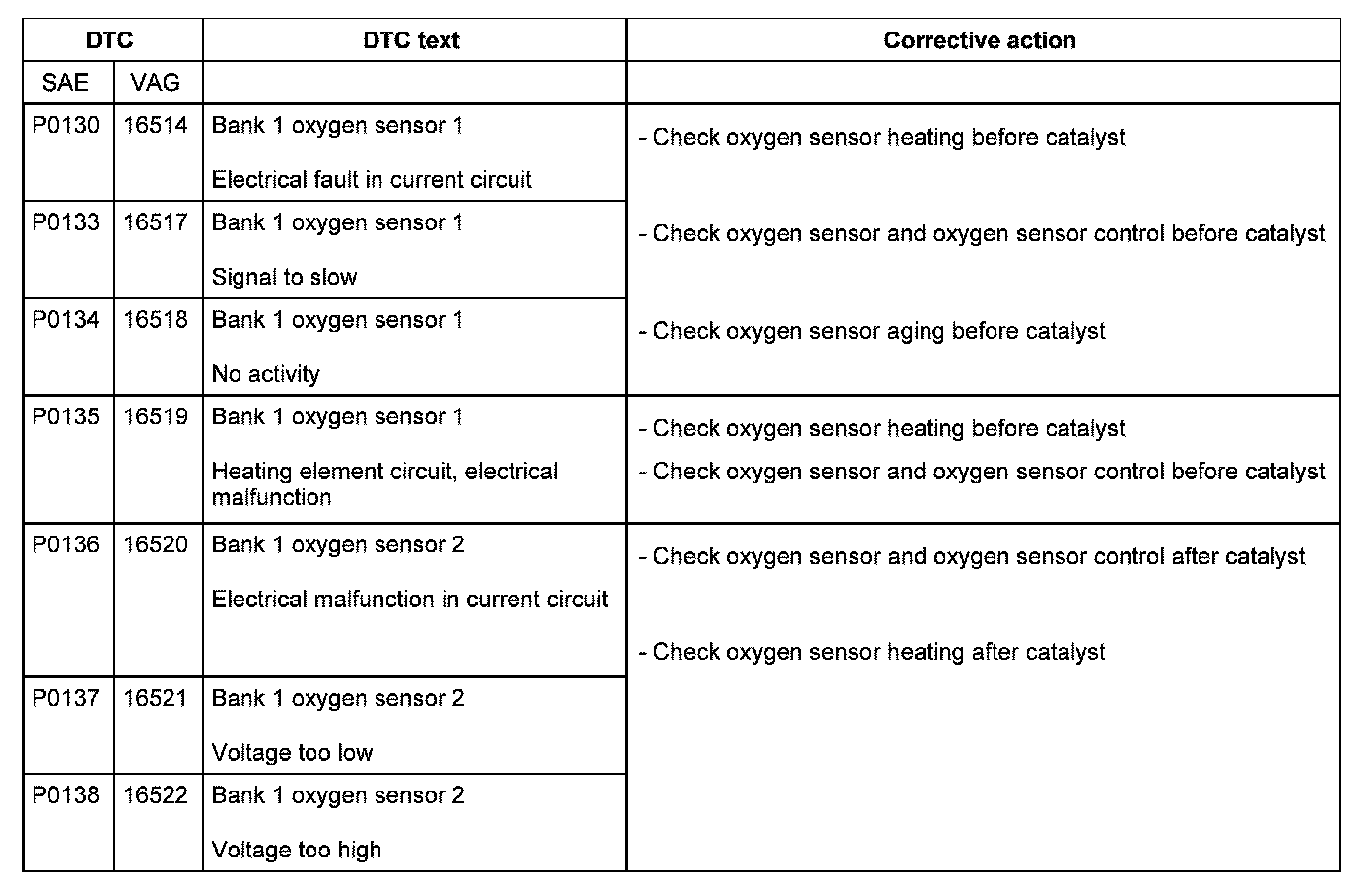 DTC P0130 - P0138:
