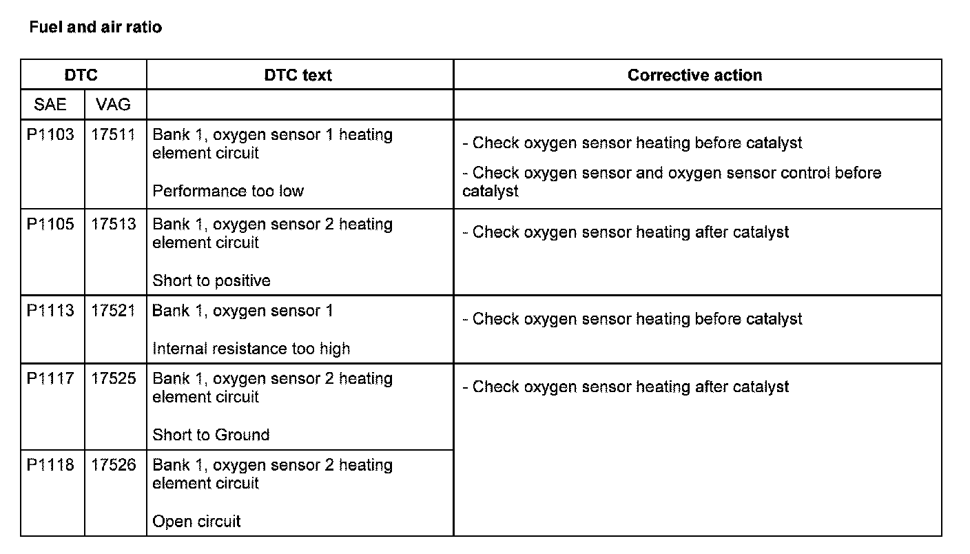 DTC P1103 - P1118: