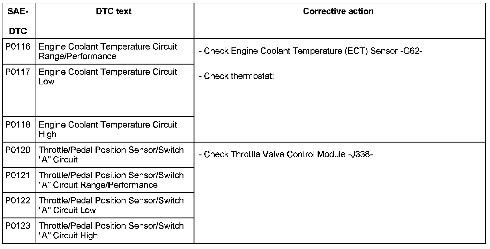 DTC P0116 - P0123: