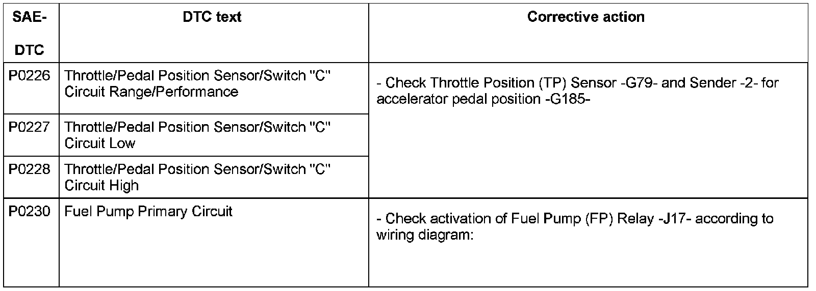 DTC P0226 - P0230: