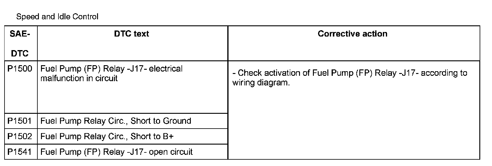DTC P1500 - P1541: