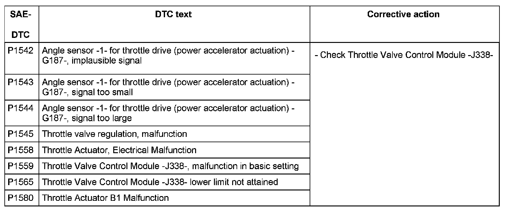 DTC P1542 - P1580: