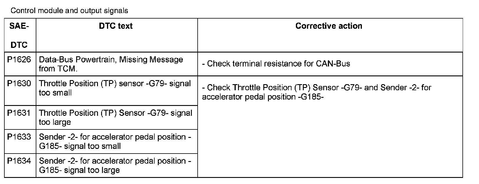 DTC P1626 - P1634: