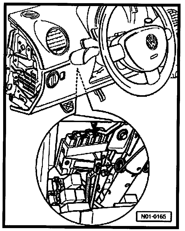 The central control module for comfort system -J393- is located under the dash panel and is secured by a bracket to the steering column. It is equipped with DTC memory. The Data Link Connector (DLC) is located in the center console.