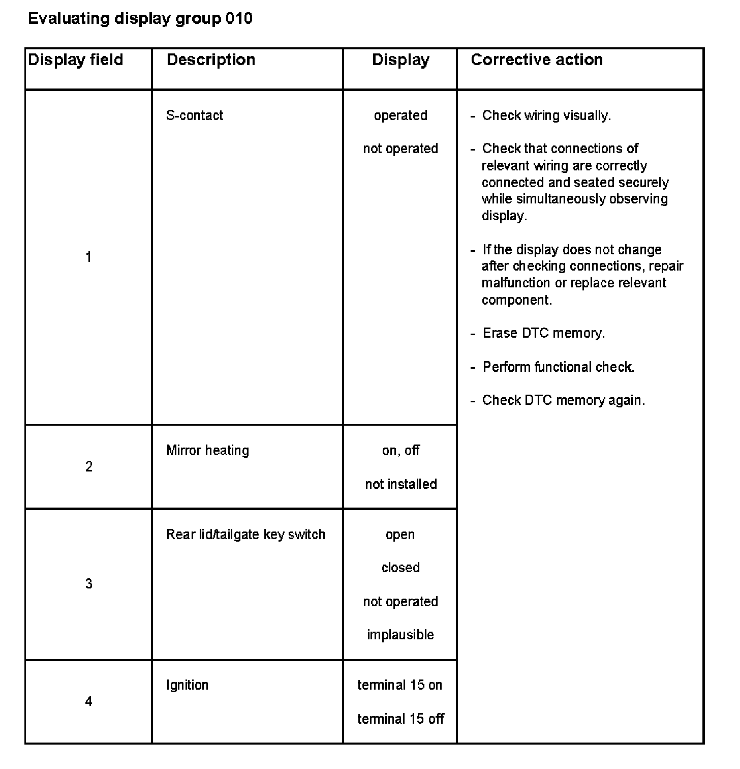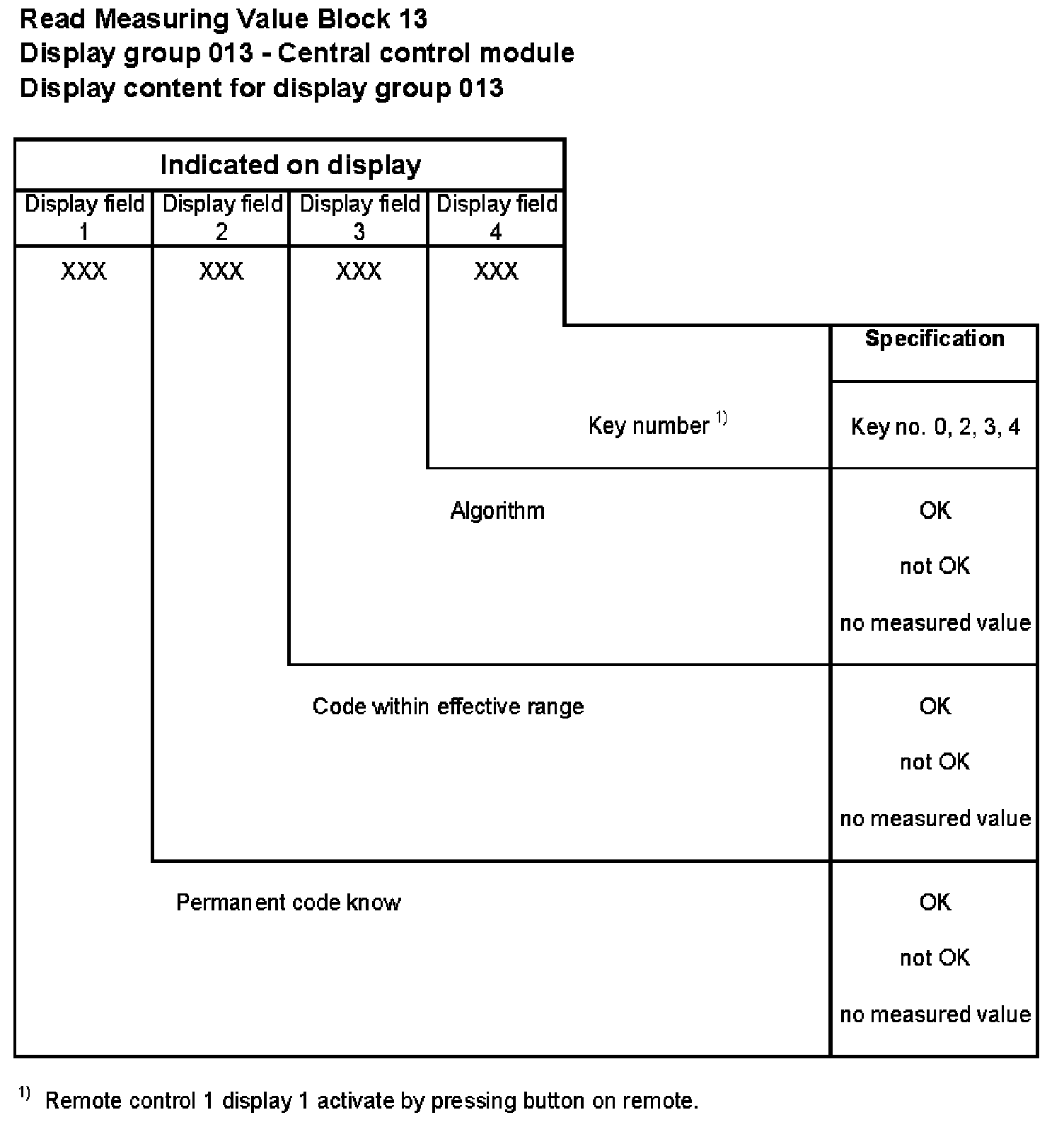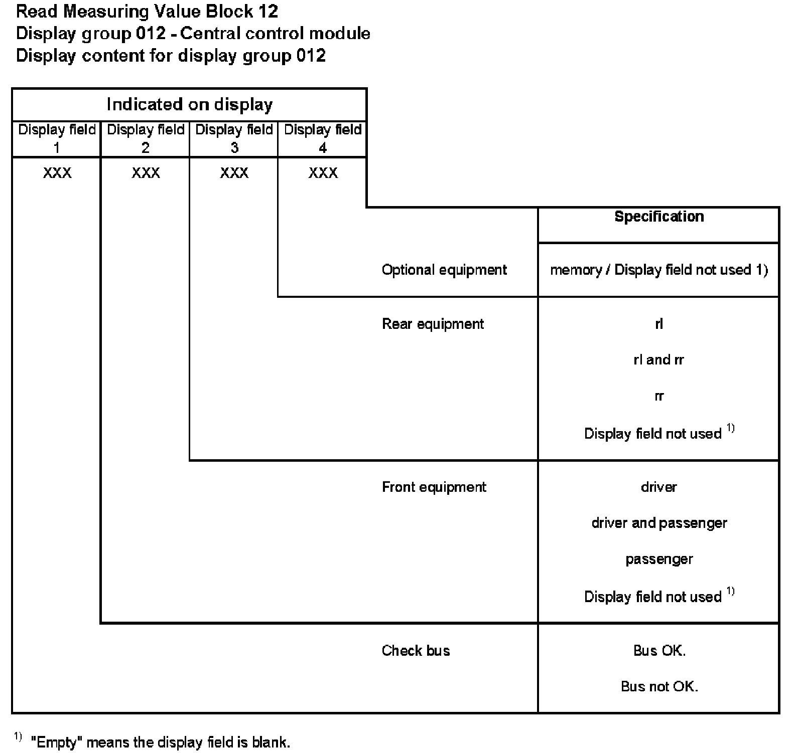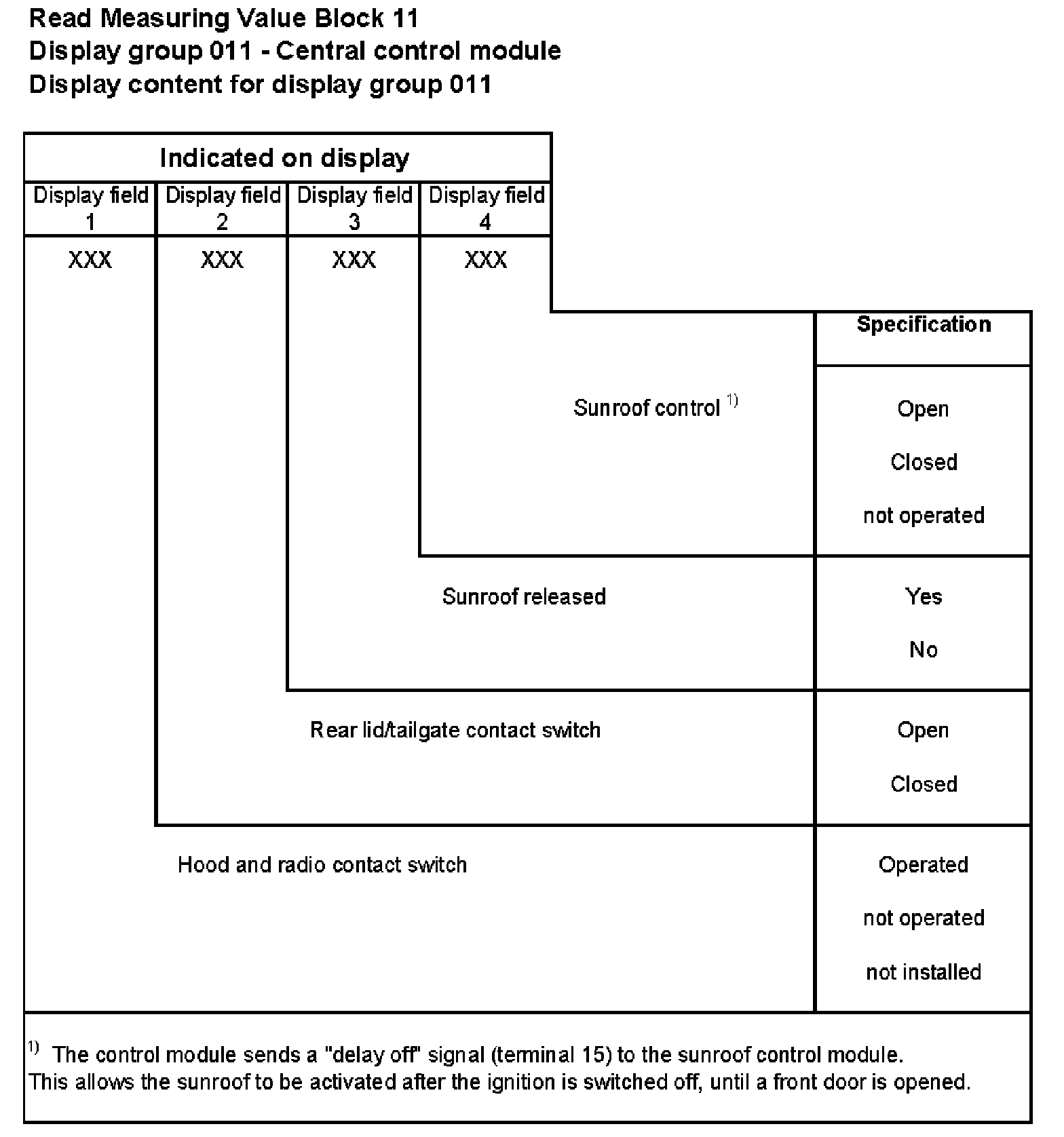 For example, if there is a malfunction in the driver's side door control module, display field 2 will indicate "passenger" only.