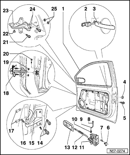 NOTE: Always replace door hinge bolts (except - 16 - and - 22 -) and pin - 24 - after loosening.