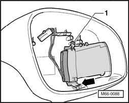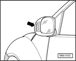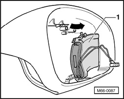 - Remove bolt - 1 - inside of mirror housing and unclip catch - arrow -.