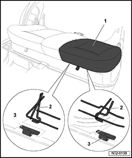 - Guide linkage - 2 - into bracket - 3 -, fold seatbench - 1 - toward rear and press down at front.