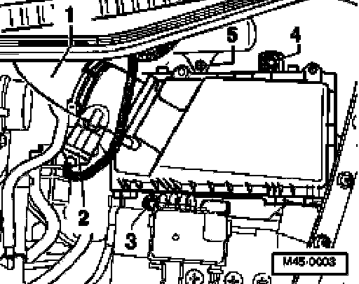 - Remove intake hose -1- and connector -2- off mass air flow sensor.