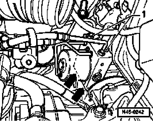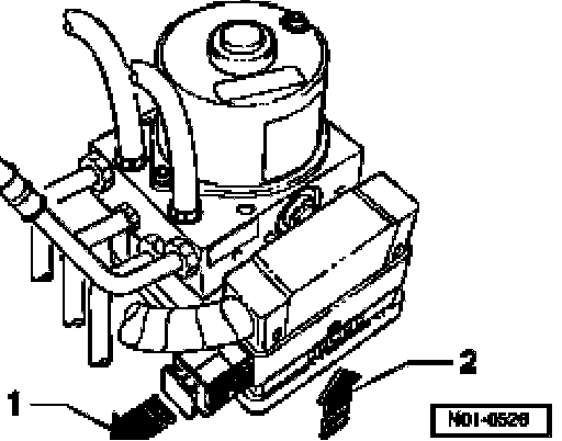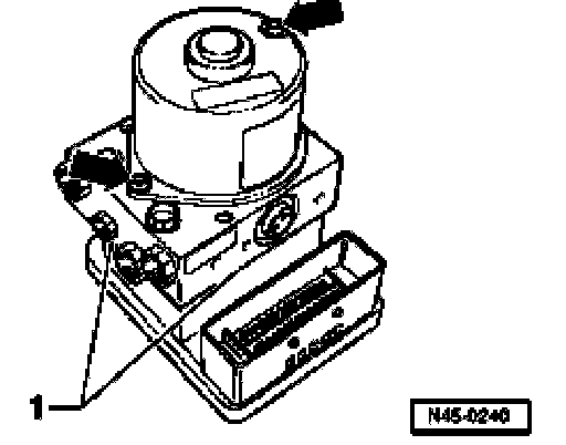 - Disconnect brake line from hydraulic unit -1- to brake master cylinder and tie-up.