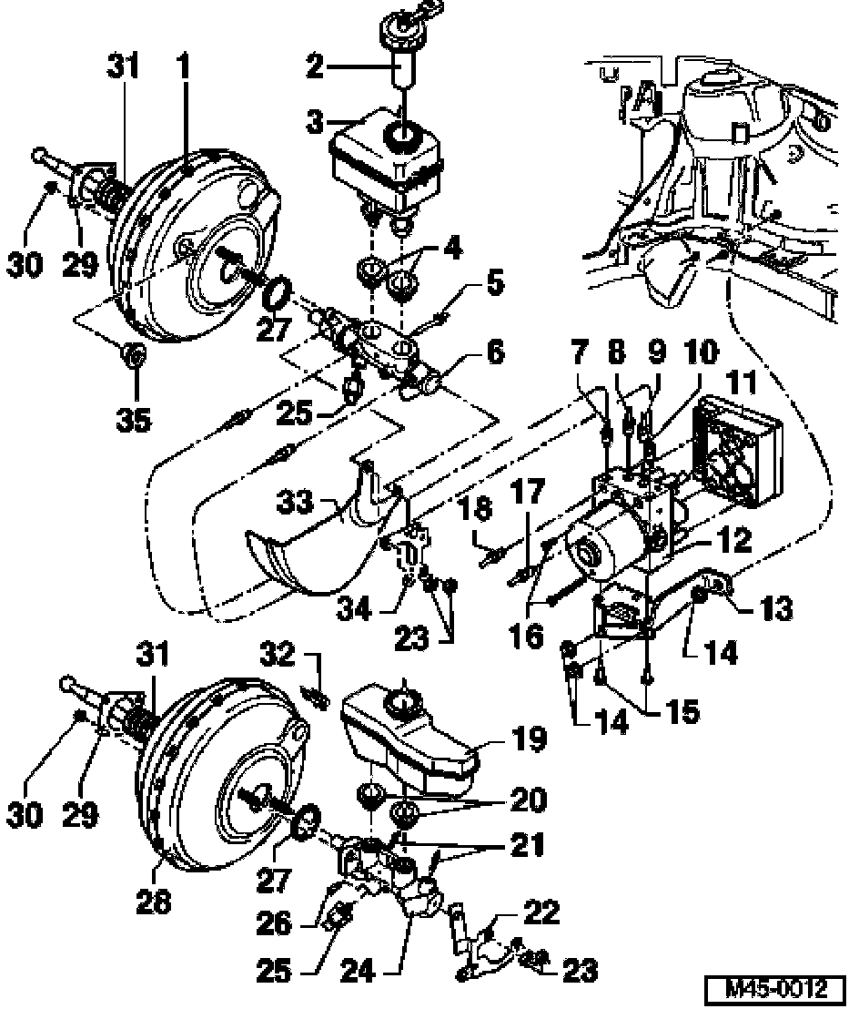 Note: Complete master cylinder and brake booster can be replaced independently of each other.