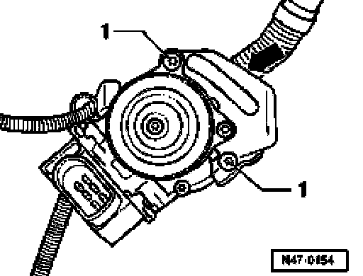- Remove bolt -1- on bracket for brake system vacuum pump -V192-. - Pull hose -arrow- off brake system vacuum pump 192-. - Take out brake system vacuum pump -V192-.