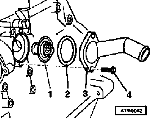 - Install connecting flange -3- with thermostat -1- into engine block.