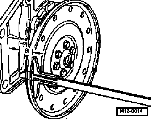Note: Measure through a hole in the drive plate to the machined surface of the engine block.