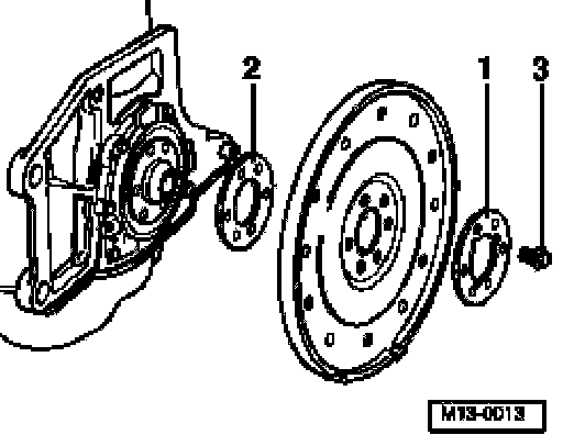 - Remove drive plate again and install shim -2-.