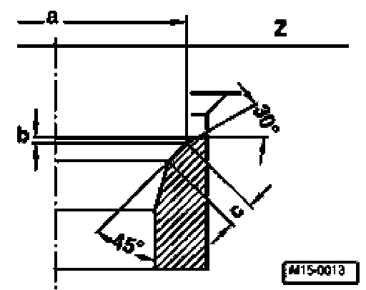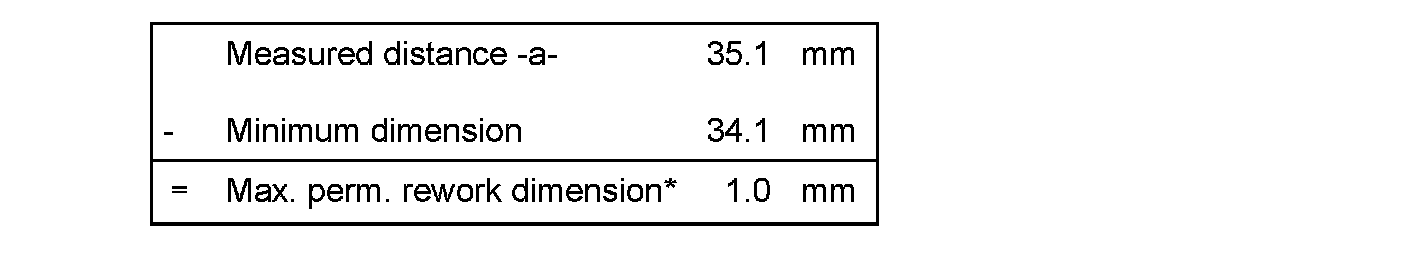- Calculate Max. permissible reworking dimension from measured distance -a- MINUS the minimum dimension.
