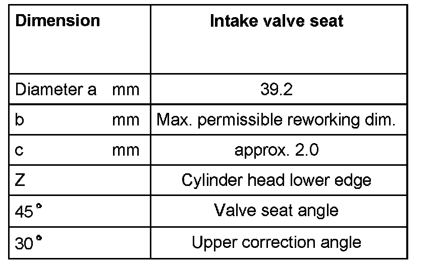 ^ The valve seats should only be reworked enough to produce a symmetrical seating pattern. The Maximum permissible reworking dimension must be calculated before reworking begins. If this dimension is exceeded, proper function of the hydraulic lifters can no longer be guaranteed and the cylinder head must be replaced.