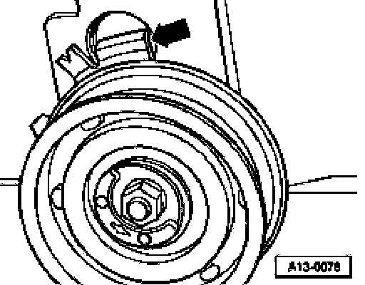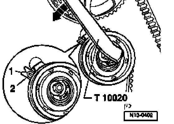 - Press hard with thumb on camshaft drive belt. Indicator -2- must move (use mirror).