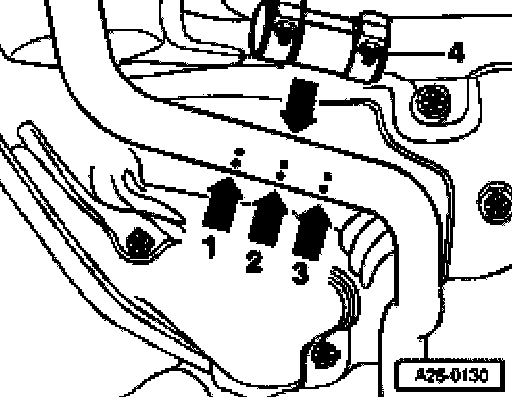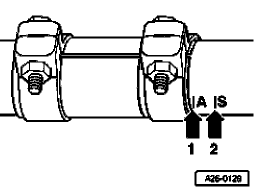 - When installing position repair double clamp -4- between points -arrows- 1 and 3