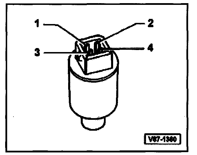 Switch function between contacts -T4a/3- and -T4a/4- (at connector housing) switches coolant fan -V7- to 2nd speed when refrigerant pressure rises.