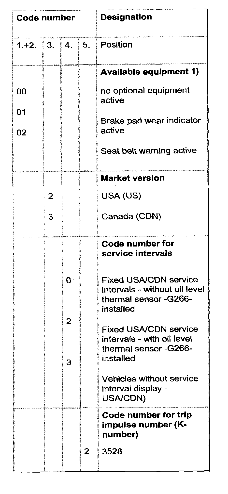 3 Code number for service intervals