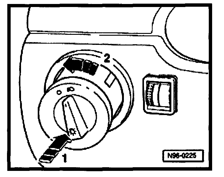 - Hold light switch and press rotary knob inward (arrow -1-) and turn slightly to left (arrow -2-).