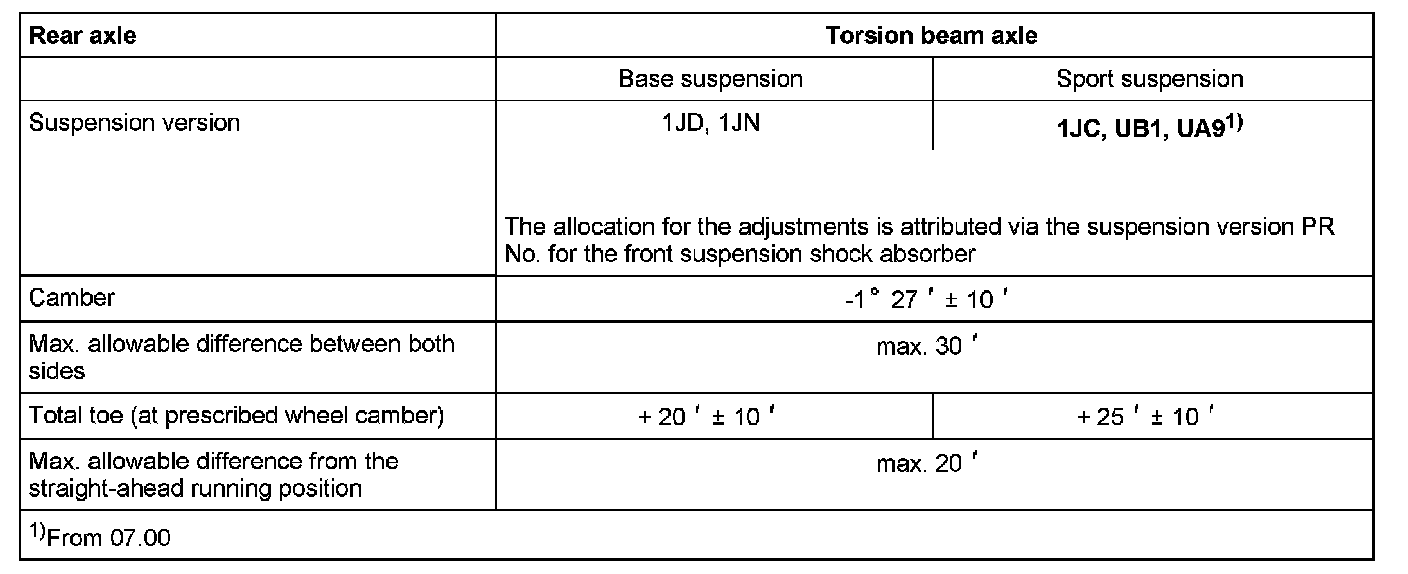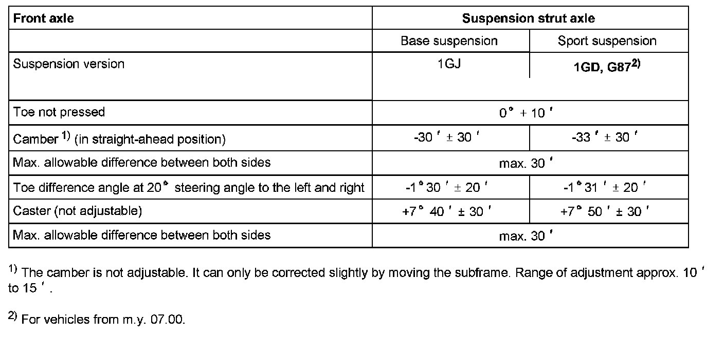 Vehicle alignment specifications
