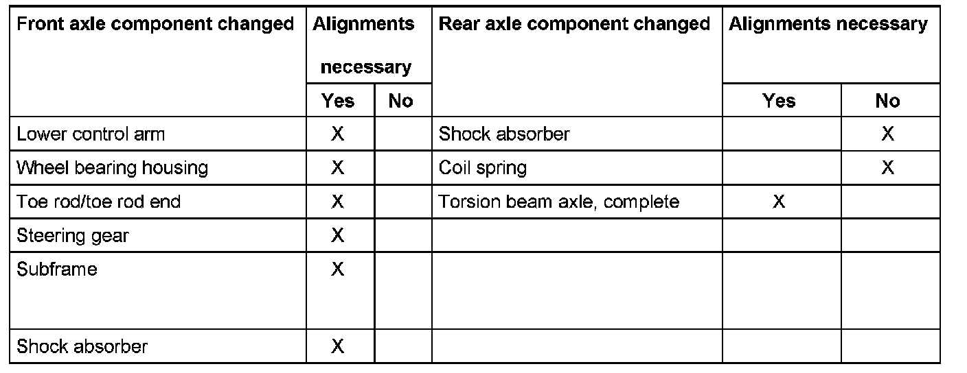 The vehicle alignment should be measured using VW/AUDI approved wheel alignment equipment!