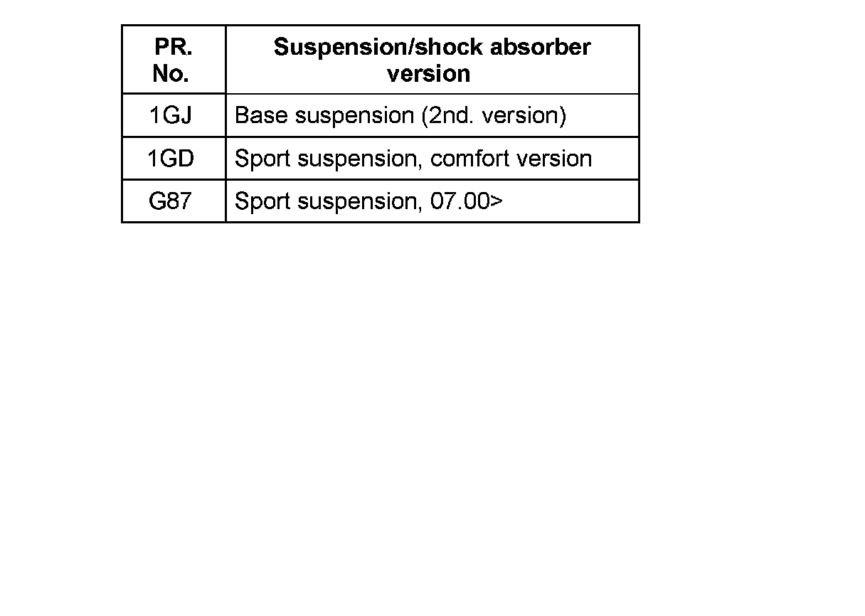 Different suspension versions are available as optional equipment. These are identified by the PR numbers (factory codes).