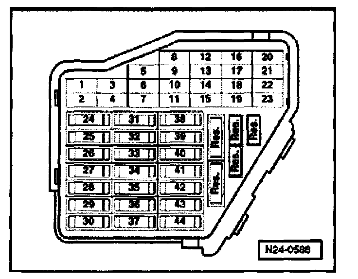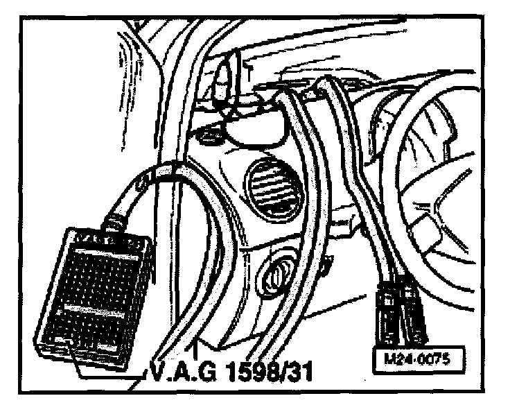 - Connect test box V.A.G 1598/31 to control module wiring harness. Engine control module is not connected by this action.