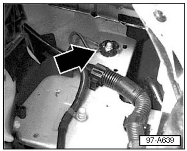 ^ Remove battery (see Repair Group 27, Battery, Removing and installing, for the appropriate model).