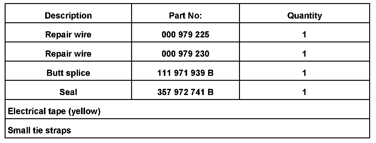 ^ Splice repair wires together using butt splice; see -> Required Parts and Tools. Do not substitute any other wires when making and assembling the repair wire.