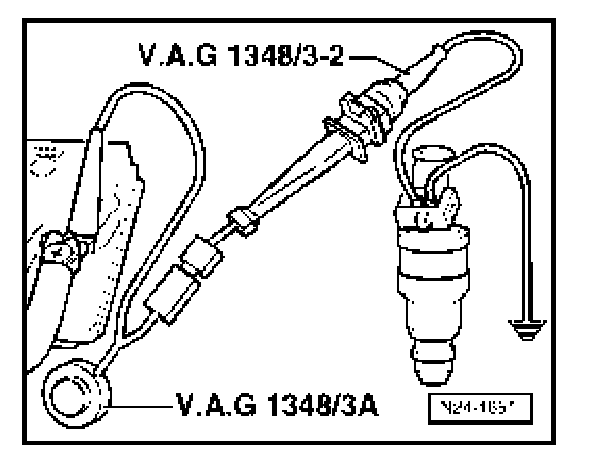 - Use adapter cable to connect second terminal of fuel injector to VAG 1348/3 remote control with VAG 1348/3-2 adapter cable.