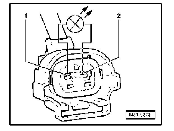 - Check wire between 2-pin connector terminal 1 and the Fuel Pump (FP) Relay -J17- for open circuit according to wiring diagram. Wire resistance: max. 1.5 Ohms
